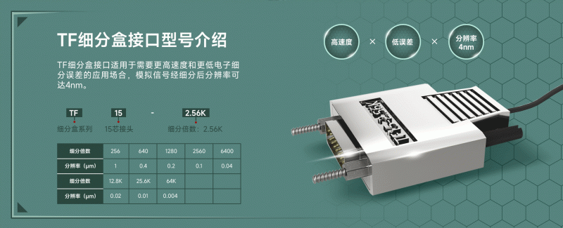好;分辨率高,配合TF15細(xì)分接頭,讀數(shù)分辨率可達(dá)4nm;安裝容許公差大(容許誤差±0.1mm)。