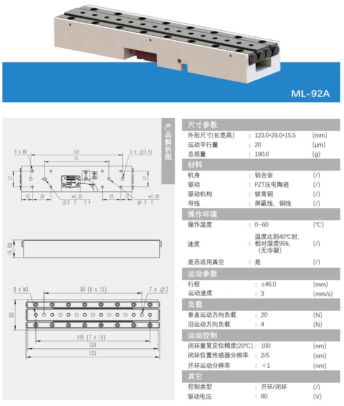 壓電直線納米位移臺ML-92A技術(shù)參數(shù)
