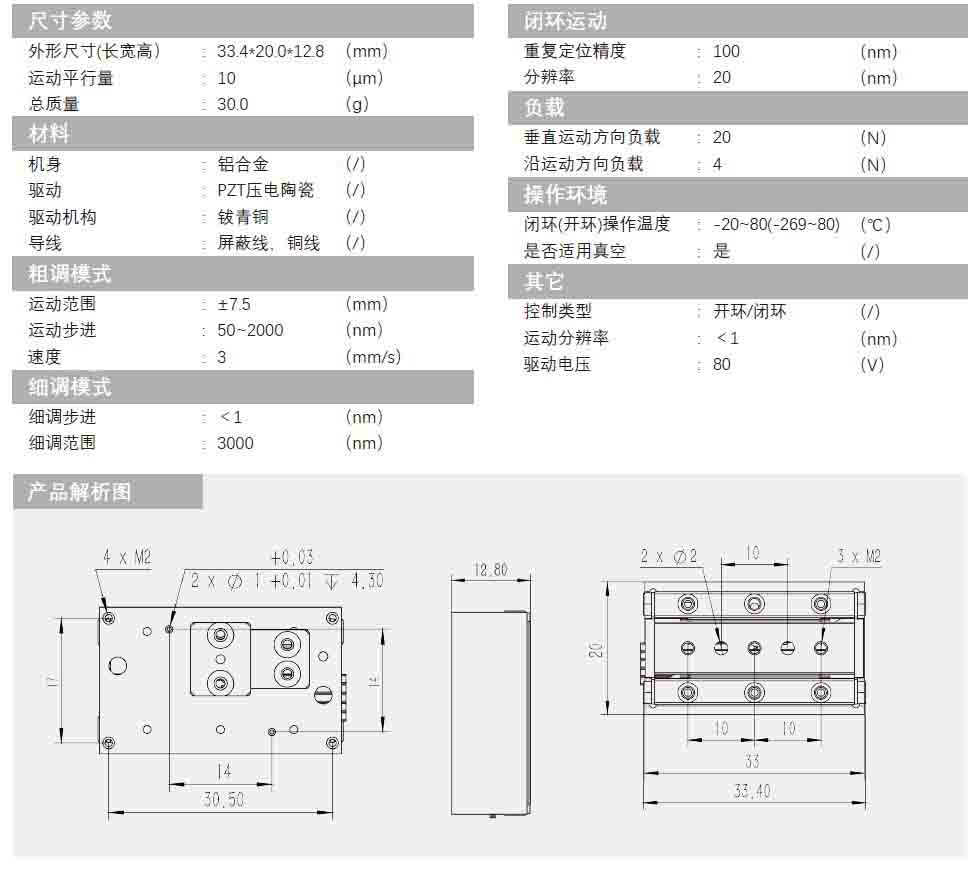 線性壓電位移臺-ML系列 ML-15A 分辨率20nm,適用真空環(huán)境。